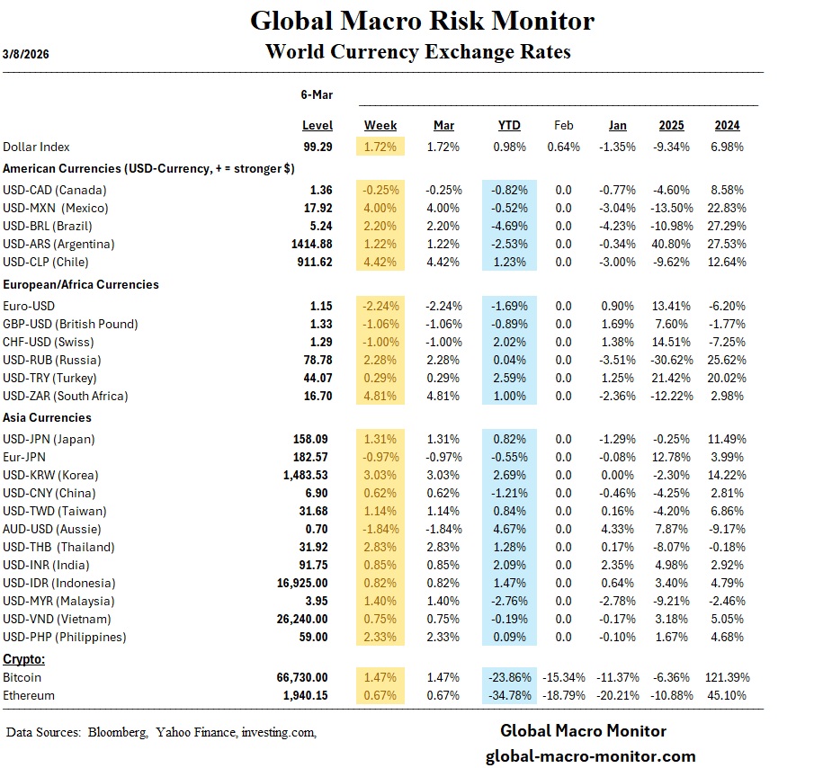 Europe: The STOXX Europe 600 tumbled 5.55% as military strikes on Iran decimated risk appetite; Germany’s DAX and France’s CAC 40 both retreated over 6.7%.