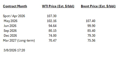 As of Sunday night, March 8, 2026, the oil futures market is in a state of historic upheaval, characterized by a massive price surge and extreme backwardation. Following a week of record gains, West Texas Intermediate (WTI) crude futures opened Sunday evening at approximately $108 per barrel, an 18% jump from Friday’s close. Brent crude similarly surged to over $111 per barrel.