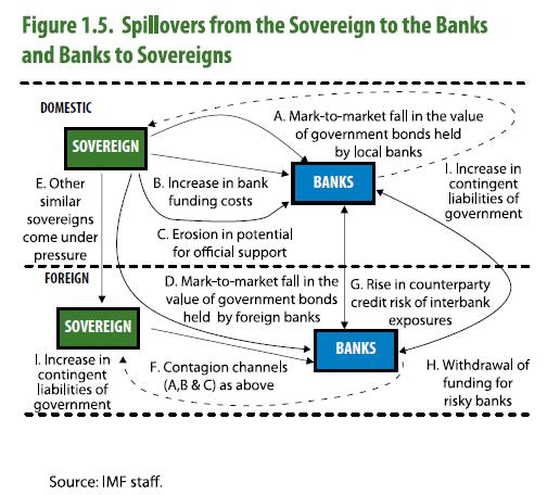Great chart from IMF showing feedback loop of Europe’s Sovereign Debt Crisis. A little busy, but stick with it.