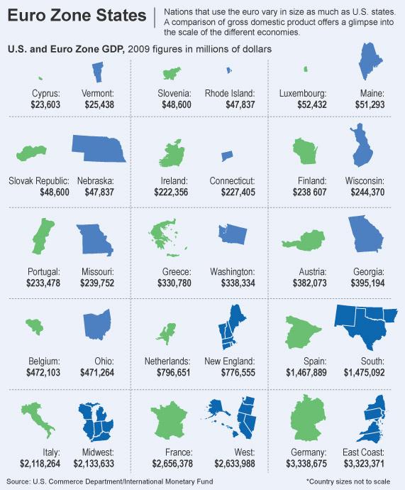 Great graphic from the Wall Street Journal’s Real Time Economics comparing the size of Eurozone economies to those of selected American states. Here’s their intro,