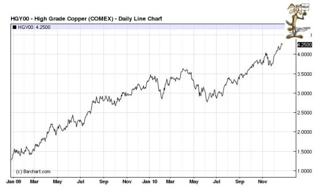 Copper: The industrial metal has had a massive 225% move off its crash low, is up 50 percent from the 2010 mid-year correction, and up 28 percent year-to-date. Though copper has been driven by supply concerns, including a recent accident at a key Chilean copper export port, this is the one commodity that appears most over extended to us.