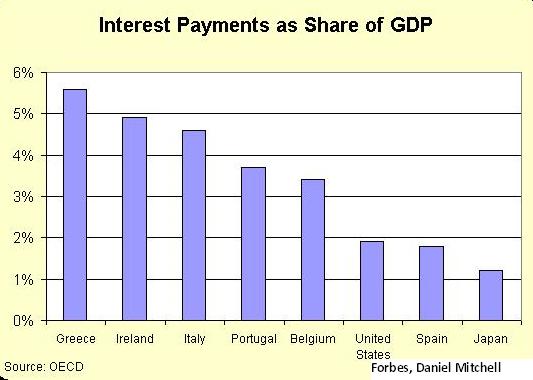 When the Irish government backstopped its banks during the crisis they took on huge contingent liabilities that are now coming home to roost. The U.S banking system’s assets are under 100 percent of GDP, however. There are other contingent liabilities of the central government, such as those of Fannie and Freddie, that may come under fire if the crisis spreads here, however.