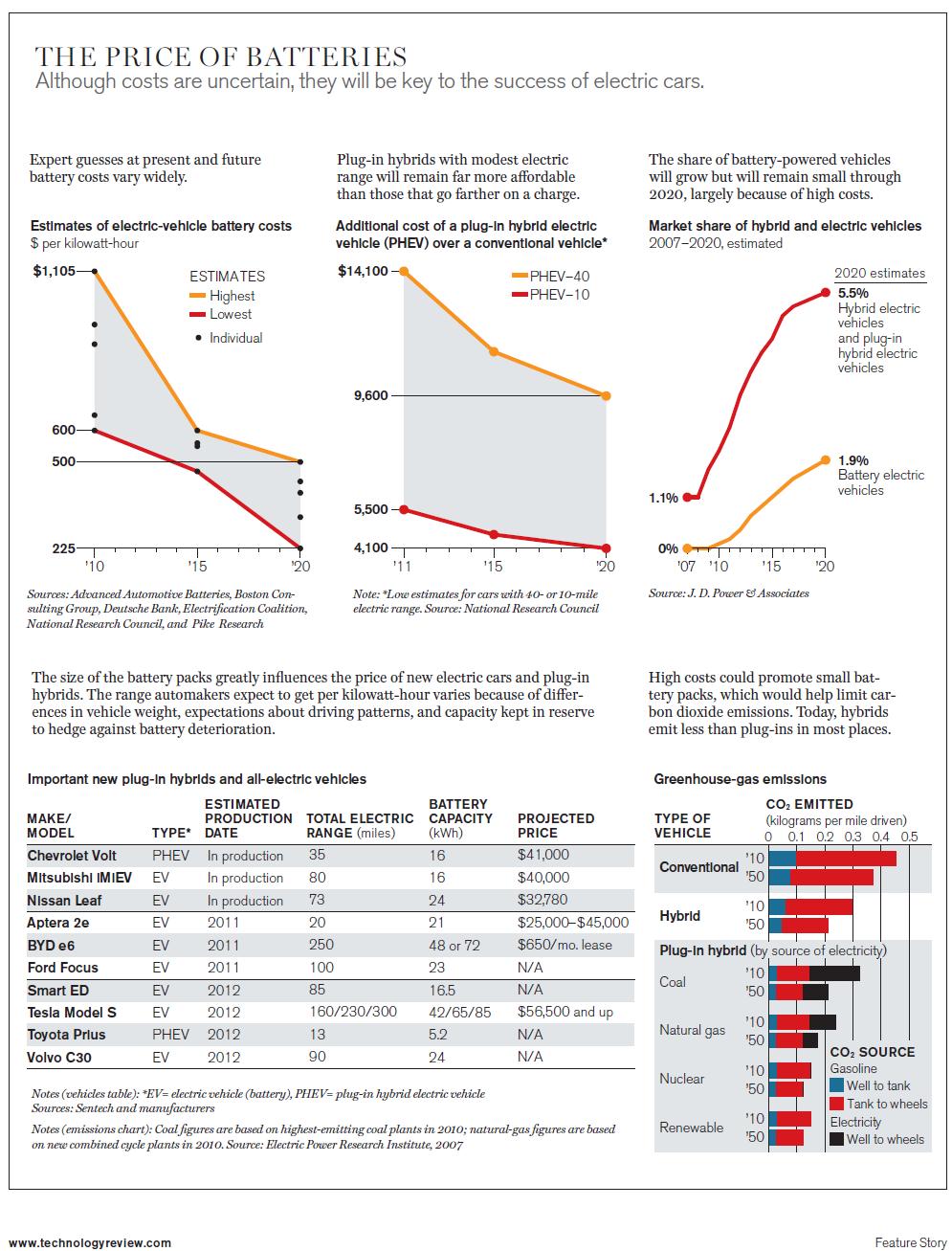 Cost is the biggest problem with the wave of battery-powered vehicles that started to arrive on the market last month. GM’s Volt, an electric vehicle that goes 35 miles per charge and has a gasoline generator for longer trips, costs more than twice as much as a similar-sized conventional car, in large part because of the battery. Increasing the amount of energy that a battery stores allows an automaker to use a smaller battery pack, thereby reducing costs…