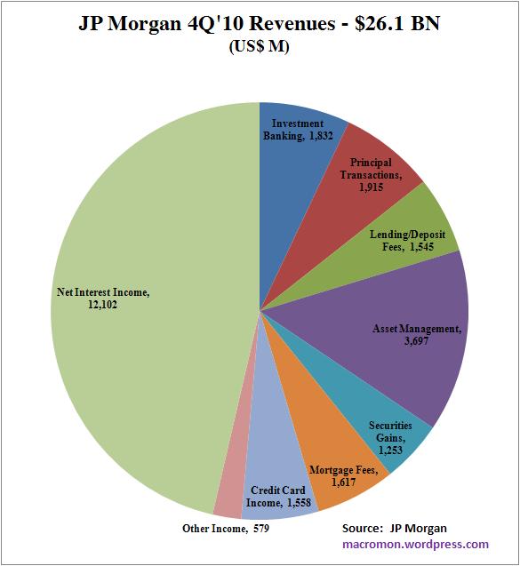 Let’s start with the caveat we’re not stock analysts and the sheer size of JP Morgan’s balance sheet and the dynamic use of reserves makes it difficult to get a true picture of what’s really going on. But it’s tough to get very excited over JPMo’s earnings report from a macro perspective. We like to look at top line growth* to give us a sense of what’s happening in the bigger macro economy.