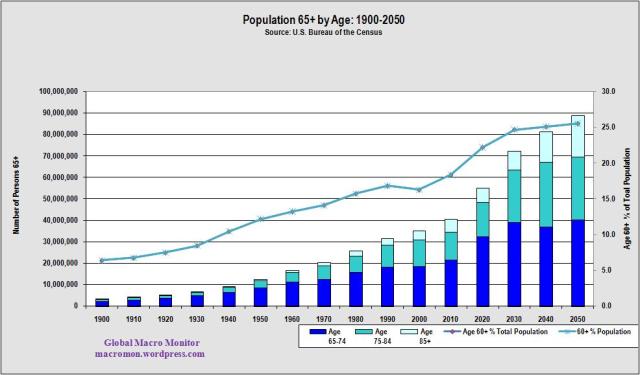 It is also time to connect some dots.  What we are witnessing in the Middle East where the young, who have little or no political voice and a not so bright future are throwing off their autocratic gerontocracies at an incredible pace.   Something similar will manifest here and the rest of the aging west, though probably in different way, when younger generations realize the consequences of being saddled with a massive debt and declining public services as the tax revenues are diverted to debt service and retirement benefits.   Not to mention the world full of carbon they have inherited.
