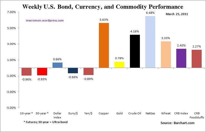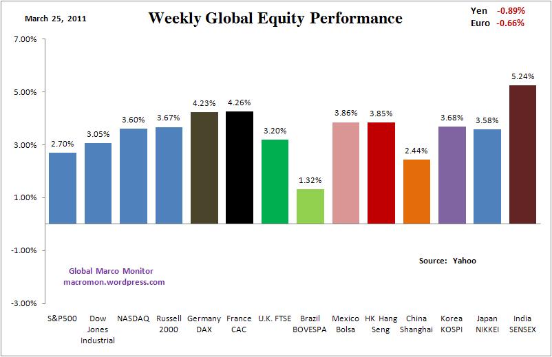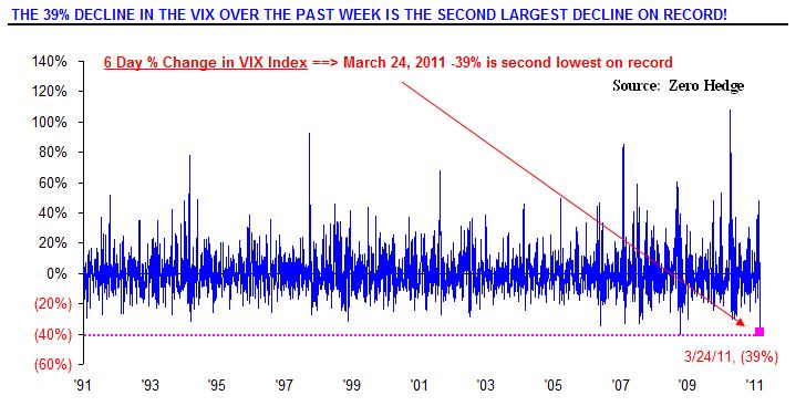 The markets showed incredible resilience last week in their ability to look past Japan’s potential supply chain and nuclear problem, continued MENA instability, $100 plus crude oil, and the recent cover of Newsweek. The VIX experienced its second biggest weekly decline. All the major U.S. equity indices we follow recaptured their 50-day moving averages with the Russell 2000 and Nasdaq outperforming, both up over 3.6 percent for the week.