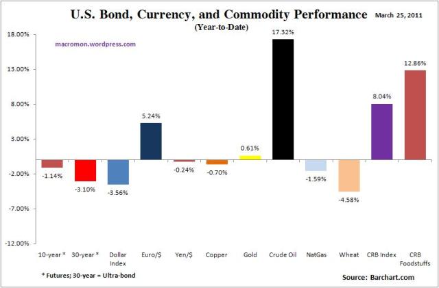 The Dollar was even able to bounce. Natural gas was up 6.48 percent and should continue to be a major beneficiary of the anti-nuke sentiment sweeping the world. Today’s elections in Germany were, among other things, a slap at Merkel’s nuclear policy. Furthermore, the BTU equivalent crude oil price relative to natural gas is $24.11 per bbl. This huge gap, in our opinion, is not sustainable.