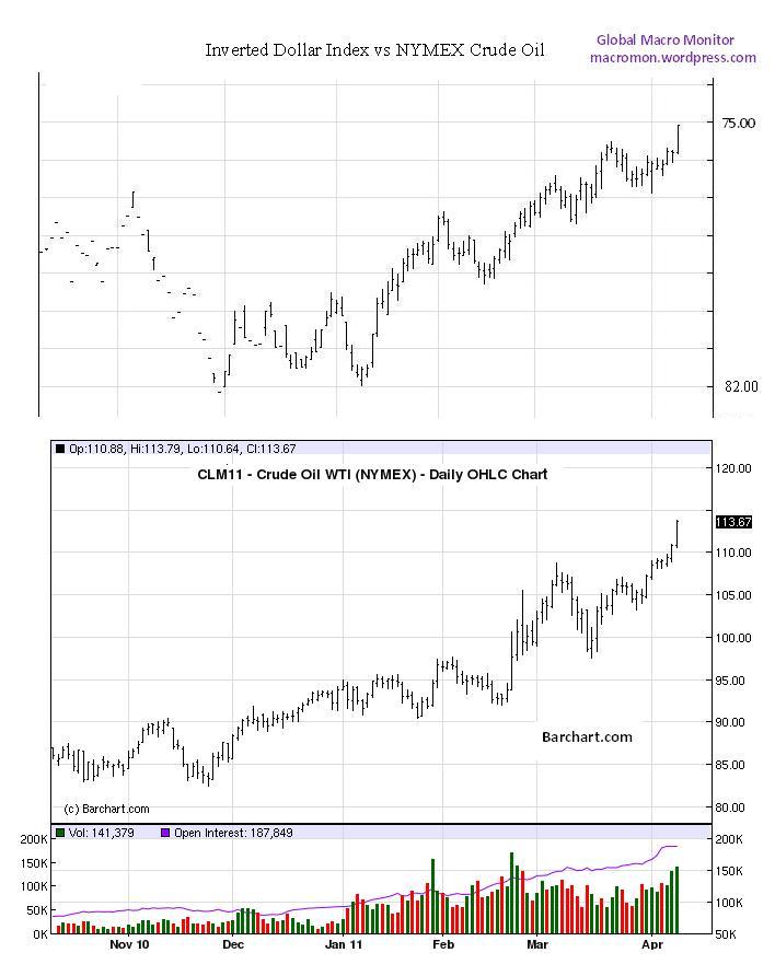 If the deficit was under control (lower than nominal GDP growth) and real short-term rates at 1 percent, for example, the dollar wouldn’t be as weak and crude oil would be $40-50 and gas $1.50 per gallon lower, in our opinion. So while they debate over such issues which may save the average American $25.00 per year, the dollar melts down sending oil over $113 per barrel and gas prices to the moon.