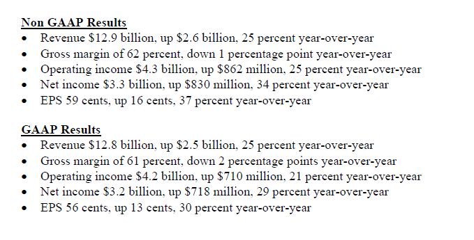 Our PC Client business remains strong and grew 17% from last year. What we are witnessing is an explosion of computing devices that connect to the Internet, and Intel is a big part of this trend. We not only participate through selling our products into these device categories, but we also profit from the wide array of products that we sell in the build out of the data center capacity required to serve all of these devices…