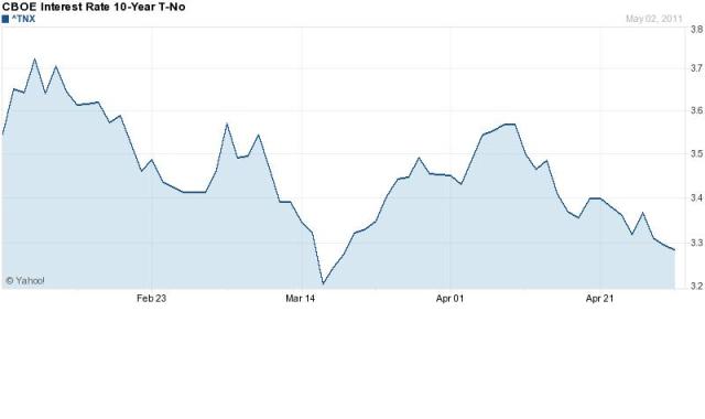 Great chart from Deustche Bank of Asian home prices indexed to Jan’07. It’s becoming increasingly clear, at least to us, that a big part of Asia is in massive credit/asset bubble and as monetary tightening plays out their day of reckoning nears. When we see a day like today in commodities we wonder if it that day is closer at hand. Indian and Brazilian stocks were hit hard on tightening and fear thereof. Even the U.S. 10-year treasury yield is behaving contrary to what the end of QE2 should dictate. What up? We’re not certain, but certainly reducing risk. (click here if charts are not observable)