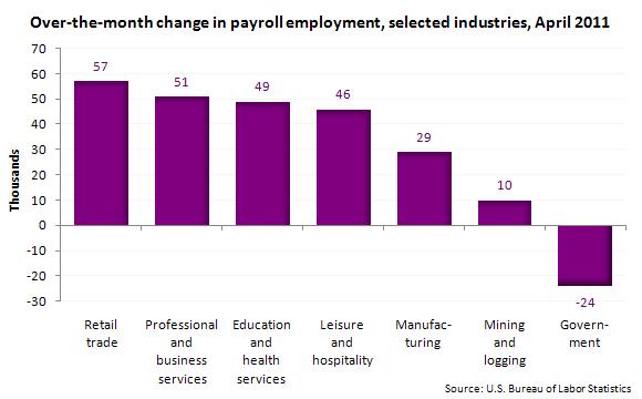 Great chart from the BLS showing the increase in private nonfarm employment by industry: