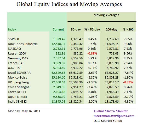 Sure we can bounce as it looks like traders are getting pretty negative and short here and you know how the market will punish when too many are offside, but the Russell and Hang Seng may be signaling a coming summer of risk aversion and capital preservation. No time to be a hero, in our opinion. (click here if table is not observable)