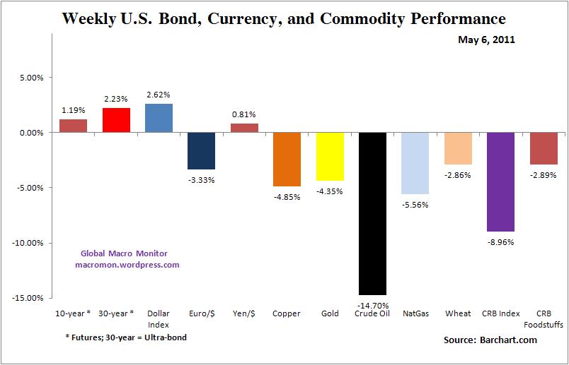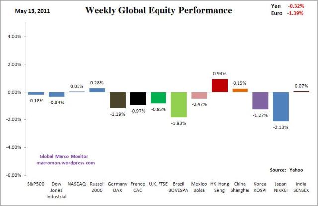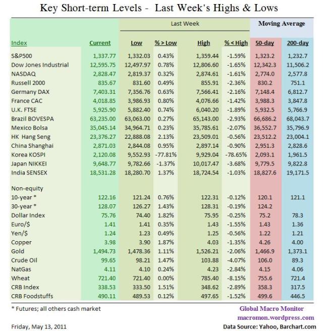 Not so much in the U.S., but there are some ugly equity (major indices) charts out there and the lows of the week ending May 6 need to hold or this stall, pause, or whatever you want to label it, could turn into a rout. Apple, the leader of this bull market, took some major pipe on Friday breaking through the bottom a two week pennant formation and its 50-day moving average. Good luck next week!