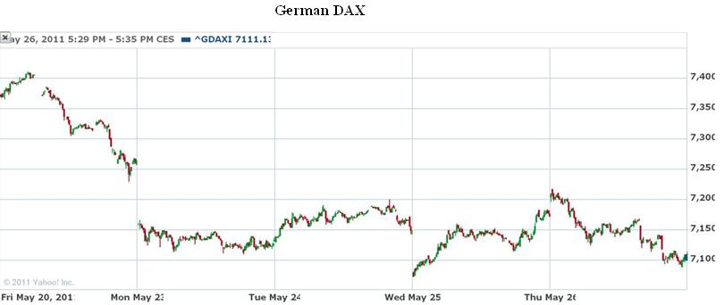 The Bad: The DAX, under pressure from the sovereign debt crisis in the periphery, is down 2.10 percent for the week.