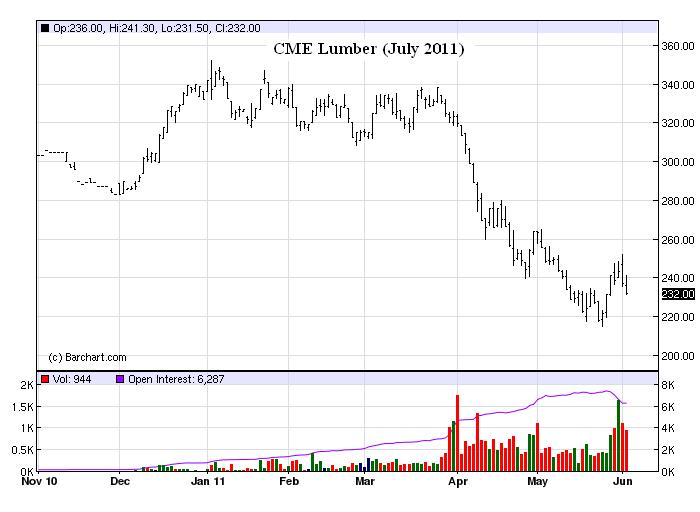 This is clearly not the case in the current balance sheet growth recession, so we are not as confident in the lumber price/nonfarm payroll relationship. Nevertheless, lumber futures have been under heavy pressure since the end of March, down over 30 percent, no doubt, partially the result of the double dip in housing prices. It will interesting to see how, or if, the correction in lumber shows up in the private nonfarm payroll number tomorrow.