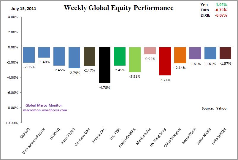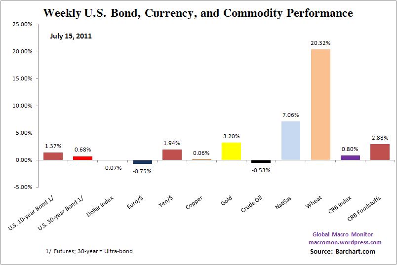 The direction of markets this week will be determined by the politics of debt, both in Brussels and Washington We are expecting some decent volatility as the markets begin to price the negative scenarios. Given the unpredictability of politics, we’re not making big directional bets, however. Could the Congress really choose the nuclear option and not raise the debt ceiling? Logic says no. Are politicians logical? Place your bets.