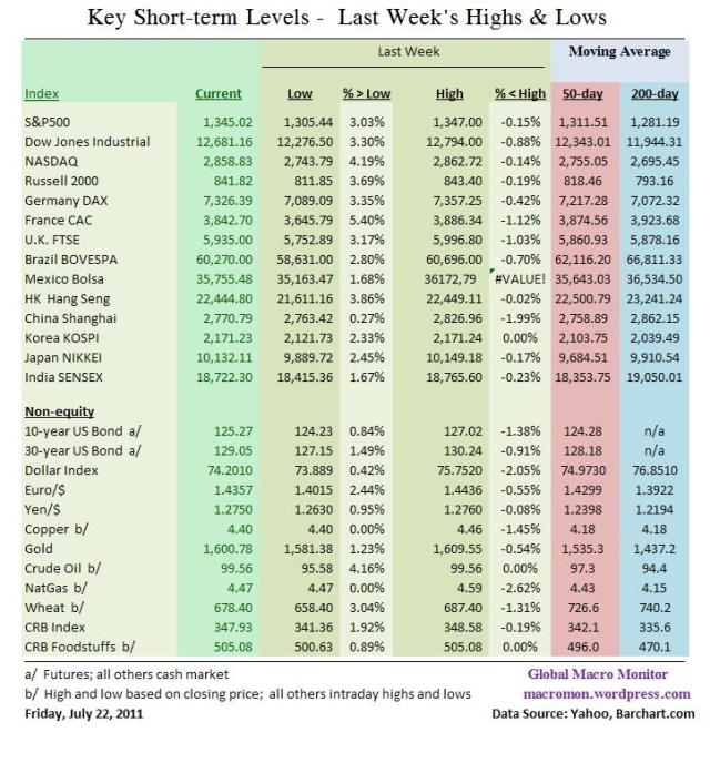 The S&P500 closed Friday near the top of its trading range and just a little more than 1 percent below its post crash closing high of 1361.22 on the back of some decent earnings — and an Apple blowout — and the Greece debt restructuring news. It’s clear they wanna buy this market but the macro keeps getting in the way.