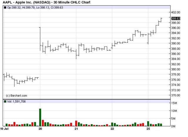 The $400 level may be some temporary resistance, but, our sense is the stock will soon pierce it, in the words of Mr. Greenspan, “like a hot knife through butter.” Apple is at the forefront of the structural changes that are taking place in the global economy and many still don’t get it.
