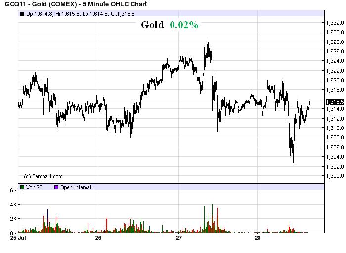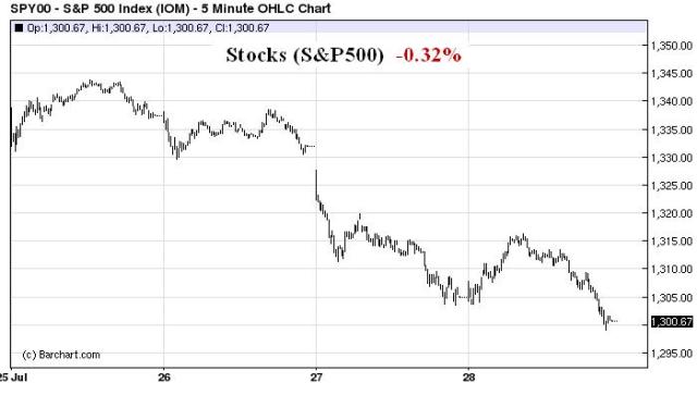 Looks like the Four Horsemen of the Apocalypse spent the day watering their horses. Not much happening in our Armageddon Trade today. Gold, which is trading poorly, bounced off the lows and stocks reversed a decent rally to close lower. It seems most players are in their bunkers waiting to see if the anarchists in Washington can somehow get their act together.