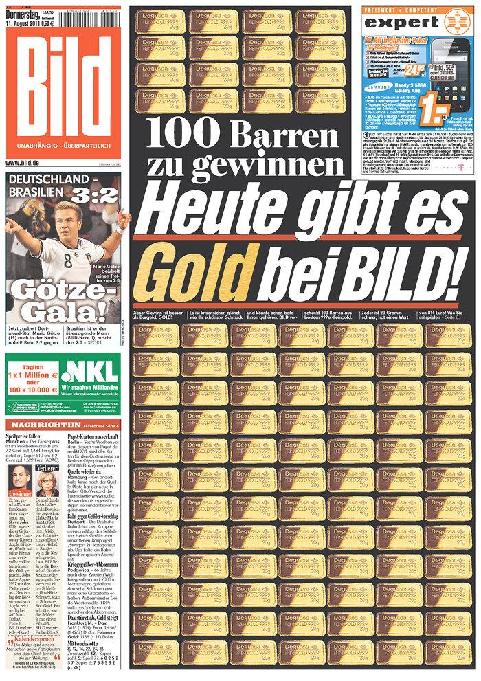 The headline reads, “100 Ingots to Win: Today You Can Get Gold With Bild”