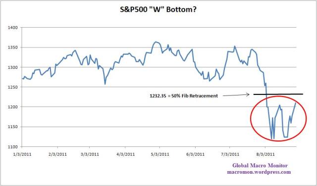 The 50% retracement of the recent closing high to closing crash low is 1232.35. After that is the 61.8% retracement at 1258.86. We’re focusing more on taking some positions in emerging equities, particularly Korea and Brazil. Stay tuned.