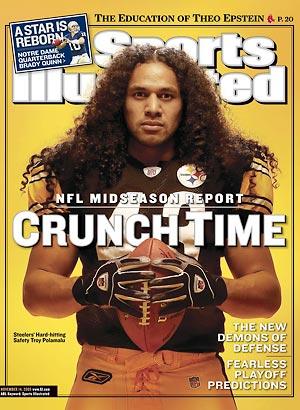 Troy Aumua Polamalu was drafted by the Pittsburgh Steelers in the first round of the 2003 NFL Draft. A strong safety, Polamalu is known for his hard-hitting style on the field, which helped him earn the 2010 NFL Defensive Player of the Year Award. In addition to his athletic prowess, Polamalu is readily recognized on the field by his luxuriant hair which cascades down his back.