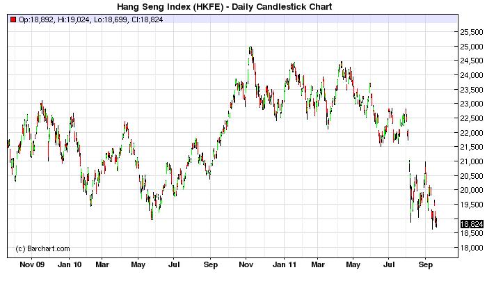 While all eyes are focused on Europe the Hang Seng has been in a death spiral. It is down 25 percent from its November peak and off 17.5 percent since its intraday high on August 1st, while the S&P500 is down around 9 percent. It’s signaling something ain’t right and may — and we stress may — be a precursor to a big break in the markets. Keep it on your radar.