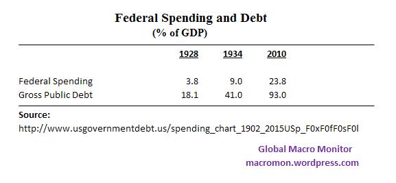 We provide a little historical context with the data table. President Roosevelt had a lot of room to expand government spending. President Obama does not.