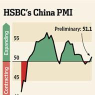 The rise in the HSBC PMI, the first since March, could assuage some concerns over a sharp slowdown in the world’s second-largest economy.