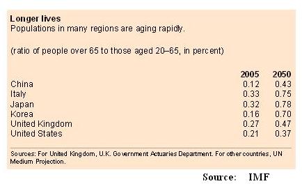 Longer lives and lower fertility rates are dramatically increasing the proportion of the population above the ages we typically associate with retirement (see table). In the United Kingdom, the ratio of people older than 65 to those between the ages of 20 and 65 will almost double between now and 2050. In Korea, that ratio could increase more than four times.