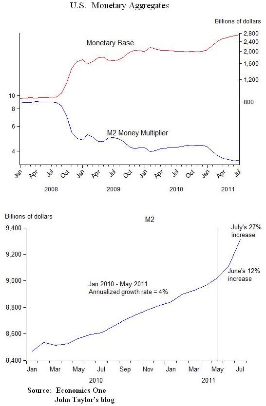 Quantitative easing in the U.S., U.K., and Japan is an attempt by the monetary authorities to offset the massive headwinds of the credit contraction caused by the collapse of the U.S. shadow banking system and the tightening of bank lending. Though the Fed has tripled the monetary base and has stepped in to become the de facto shadow banking system, the monetary aggregates have not experienced similar growth.