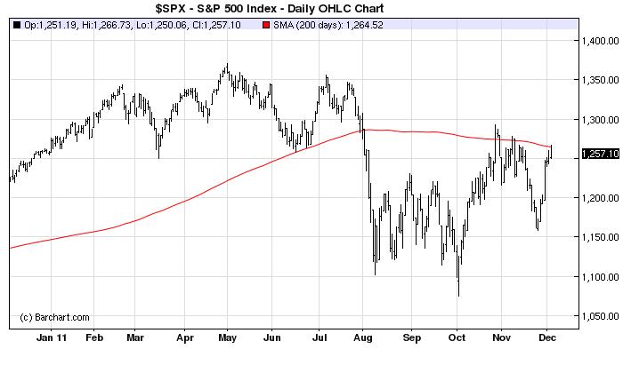 Looked like today could be the day the S&P500 broke through and closed above its 200-day. That is, before the tape bomb out of the S&P putting most of the ‘Zone countries on negative watch for a credit downgrade. Let’s see how this plays out in in Europe tomorrow and whether the hardliners in Germany say, “… told you so!'”