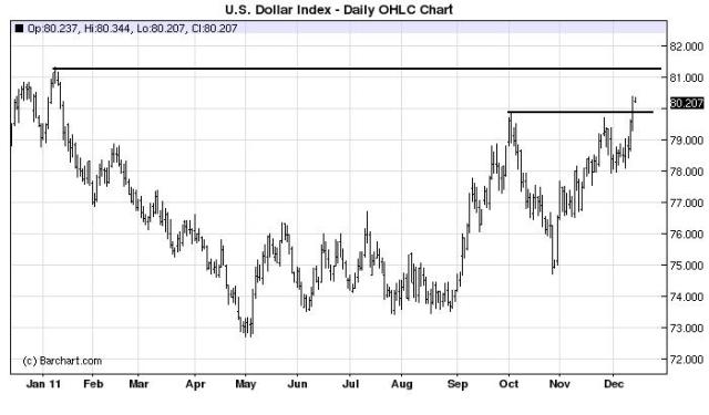 The Dollar Index,  the “Dixie,” is breaking out and looks like it will slice through the next resistance level “like a hot knife through butter.”   For those interested,  click here for the song Dixie and here for its historic significance.