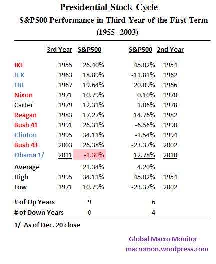 Remember 1991, the third year of President Bush #41, which saw a nutcracking 10.5 percent ramp in the last 14 trading days. When the big money is away, the bulls can play.