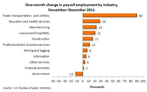 In December, employment in transportation and warehousing rose sharply (+50,000). Almost all of the gain occurred in the couriers and messengers industry (+42,000); seasonal hiring was particularly strong in December.