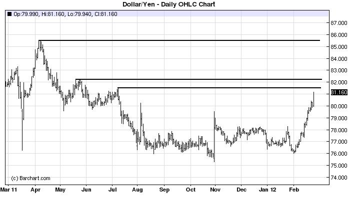 The Yen got hammered again this week breaking through almost all technical support and looks to at least test last year’s lows, equivalent to an 85 dollar/yen. It must first clear a key zone of resistance at 81.50-82.25.