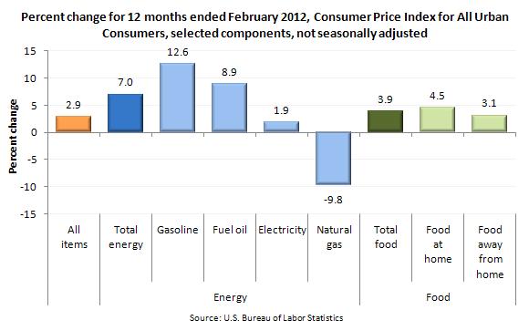 The Consumer Price Index for All Urban Consumers (CPI-U) in the U.S. increased 2.9 percent in February before seasonal adjustment. These BLS charts and table illustrate what is driving the increase.