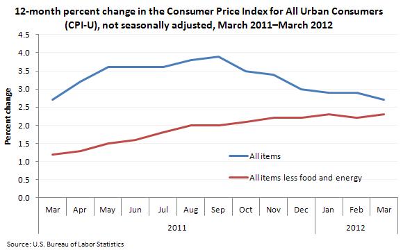 Real average hourly earnings for all employees fell 0.1 percent from February 2012 to March 2012, seasonally adjusted, the U.S. Bureau of Labor Statistics reported today. A 0.2 percent increase in the average hourly earnings was more than offset by a 0.3 percent increase in the Consumer Price Index for All Urban Consumers (CPI-U).