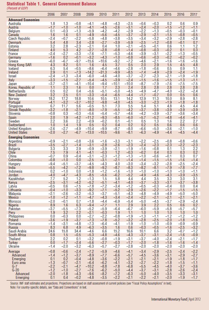 The IMF is out with their Fiscal Monitor today. Great stats. Here is a comparison of the fiscal health of the world’s economies.