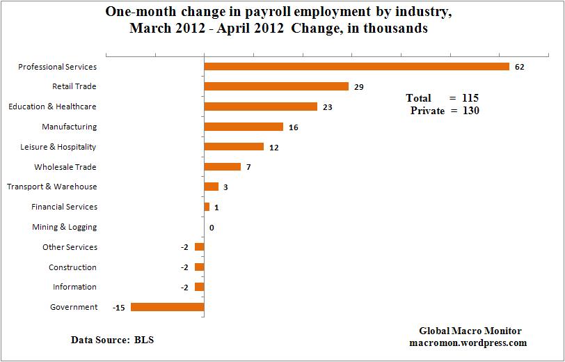 Nonfarm payroll employment rose by 115,000 in April, and the unemployment rate was little changed at 8.1 percent, the U.S. Bureau of Labor Statistics reported today. Employment increased in professional and business services, retail trade, and health care, but declined in transportation and warehousing.