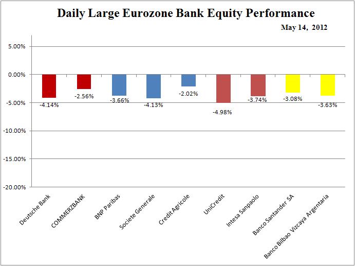 Large Eurozone bank stocks down 2-4 percent;