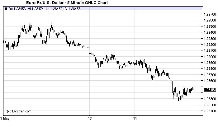 Euro currency down 0.53 percent against the U.S. dollar.