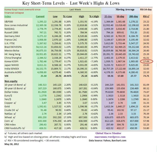 S&P500, Dow, Nasdaq, Russell, DAX, FSTE, BOVESPA, Mexico IPC, Kospi, and All Ordinaries have worst week of 2012.