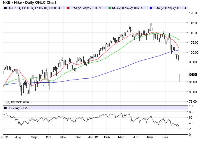 Furthermore, the macro is now catching up with the micro. Take a look at NIKE stock today. This was THE play for the upcoming Olympics and 2014 World Cup in Brazil and is getting obliterated today after yesterday’s earnings release.