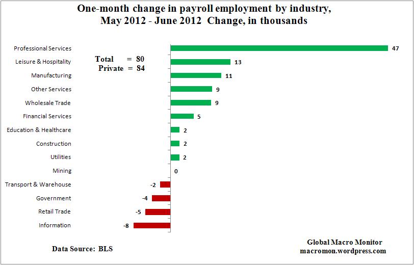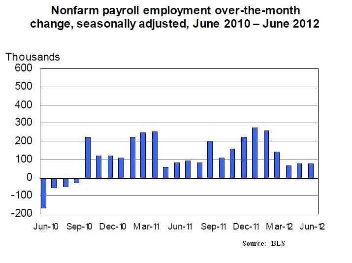 Nonfarm payroll employment continued to edge up in June (+80,000), and the unemployment rate was unchanged at 8.2 percent, the U.S. Bureau of Labor Statistics reported today. Professional and business services added jobs, and employment in other major industries changed little over the month.