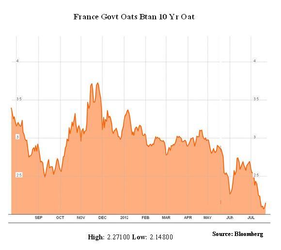 May brought the end of the “Merkozy” approach to the Euro crisis as the French voted out the austerity-loving Conservative and voted in Socialist President François Hollande. Under the new regime, France is now cozying up to its new anti-austerity, pro-money-printing allies,Italy and Spain. This makes sense when one considers that France’s economy is more akin to that of its southern neighbors than it is to the German economy. Strangely, the French bond market hasn’t figured this out just yet.