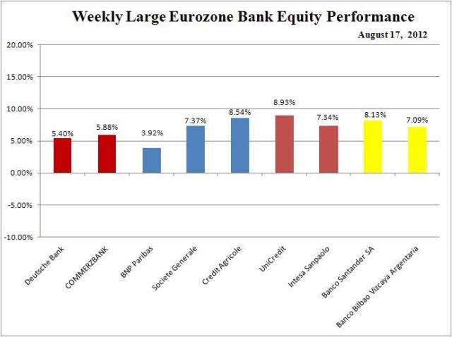 Large Eurozone banks continue to run, up 3-9 percent for the week;