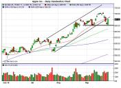 Big reversal day in Apple, up around 2 1/2 percent and over $21 off its low of the day. The positive price action helped to lift the overall stock market (see chart).