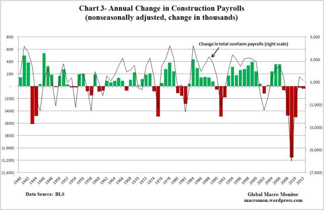 We have posted several pieces about how employment in the construction sector has failed to recover. Ironically, this is the one sector, which historically, has been most sensitive to monetary policy and interest rates.