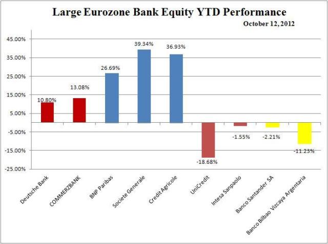 Large Eurozone banks down 0-5 percent;